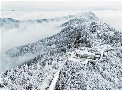连日来,湖南省衡阳市南岳衡山风景区出现了冰雪雾凇景观,银装素裹的山林在云海里若隐若现,吸引众多游客前来赏雪游玩。