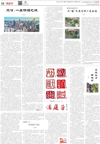 在绝大多数人眼里,天津是个明媚的城市。天津方言、相声、逗闷子、煎饼馃子、麻花……这些关键词组合在一起,能不明媚吗!这明媚包含了许多层意思:阳光光线、生活方式、生命态度、城市性格,等等。我甚至觉得天津的明媚可以用一块金黄色的蛋糕来形容,蛋糕的顶端,还涂抹了一层诱人的顶级蜂蜜。我猜这些年来有人执着地想要移居天津,就是奔着这块“蛋糕”来的。某年秋天,我漫步在五大道区域内马场道上时,金黄的银杏叶慢镜头回放般洒落着,下午的阳光分外清澈,宽阔的道路放眼望去坦坦荡荡……那一刻,我对天津的明媚,有了更具体的认识。