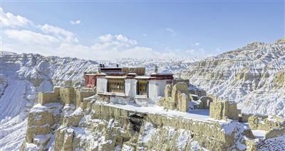 1月24日,西藏阿里地区札达县迎来降雪,全国重点文物保护单位古格王国遗址披上银装,呈现壮美雪景。