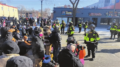 这是1月24日在美国明尼苏达州明尼阿波利斯市拍摄的示威抗议现场。