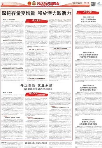 时序更迭,征程再启。今年政府工作报告提出“坚持把盘活存量作为重点抓、持续抓的战略举措”“以优质增量提高发展质量”“分类推进枢纽带动、产创协同、文商旅融合、生态宜居等区域更新发展”等,为“十五五”时期我市继续做实做优存量增量双支撑,坚持走内涵式发展路子谋篇布局,也成为代表委员们的热议焦点。大家围绕报告擘画的蓝图,纷纷建言献策,为推动天津社会主义现代化大都市建设贡献智慧与力量。