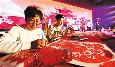 另一侧,皮影展位前,皮影人物在白布上灵动演绎着《西游记》。“蓟州区的皮影雕刻技艺已有150多年历史,技艺传承从未间断,且皮影作品存世量大、走出国门早。”“文化能人”周永良介绍,其深耕这项技艺20余年,常演节目既保留《西游记》《武松打虎》等经典,也编排红色教育、防诈防盗等现实主题内容,人物形象融合传统与现代。如今他的徒弟遍布全国,还有德国、意大利等外国学员慕名学习,其团队还参与了《热血长安》等影视剧拍摄,让蓟州区皮影实现了文化价值与经济价值的双“丰收”。