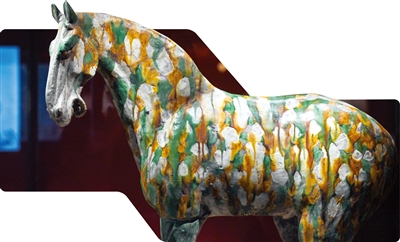 这是展出的三彩釉陶马(1月29日摄)。