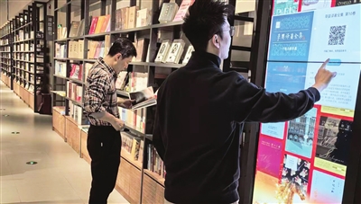 当天,有不少读者进店看书、选书、挑选文创产品。“我小时候常去和平路上的新华书店看书、买书,给我留下了很美好的回忆。现在,新华书店都开到商场里了,逛起来更方便了。”市民陈瑜点击瀑布屏上“流动”的图书封面时惊喜道,“能查看图书简介、阅读电子书,还能玩诗词飞花令等益智游戏,书店与时俱进,谁能不喜欢?”