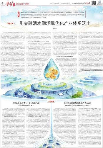 实体经济是金融的根基,金融是实体经济的血脉,服务实体经济是金融的天职。当前,金融服务实体经济聚焦在推动金融供给从“大水漫灌”转向“精准滴灌”、增加“耐心资本”供给以及促进资本市场互联互通等方面。如何以金融活水滋养现代化产业体系,激活新质生产力,成为关键课题。本版调研显示:政企协同探索成效显著,河西区财政局通过货币、监管、财政政策协同,筑牢金融服务根基,以基金集群布局赋能产业,形成资本与产业互促格局;金融机构创新产品与服务,工商银行天津市分行落地试点并购贷款,推出科创专属产品,打通“科技—产业—金融”循环。以改革破局资本循环堵点,以“耐心资本”护航企业创新,让金融活水浸润产业根脉,为新质生产力勃发与实体经济提质增效注入不竭动能。