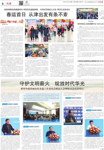 昨天,2026年春运大幕正式拉开。作为我市两大交通枢纽,天津滨海机场与天津站早已忙碌起来。机场将国内出港航班值机截载时间调整为30分钟、增设反恐防爆检查通道闸机、准备旅客服务“三色手环”,铁路升级重点旅客候车区、打造儿童游乐区、热门车次预检票……一项项贴心的服务举措,一次次温暖的服务保障,全力守护着每一条归乡路。