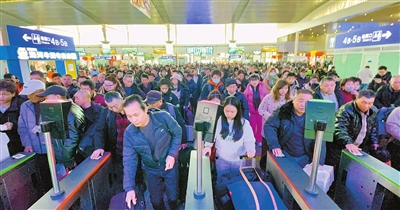 昨天春运启动,天津站返乡旅客正在检票。