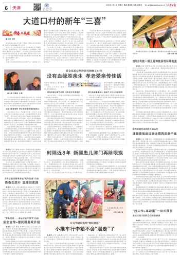 昨天上午,记者来到这个位于滨海新区太平镇的古村落。新建的社区广场上锣鼓喧天、龙狮腾跃、人潮涌动,提前开启“过年模式”。只见爱心企业代表正准备发放带来的年货礼盒,有大米、面粉、食用油、牛奶、巧克力……早早在此等候的村民脸上挂着藏不住的笑意,嘴里一直念叨着那“三喜”。