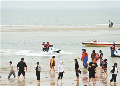 立春时节,广西北海市气温逐渐回暖,不少游客乘坐摩托艇等工具在海上冲浪游玩。图为游客乘坐摩托艇在广西北海市海上游玩。