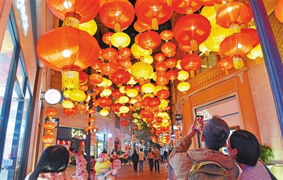 春节临近,香港利东街挂满大红灯笼,一派喜庆气氛。 新华社发