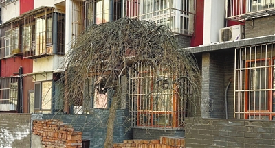 大通绿岛小区内的枯树无人修剪。