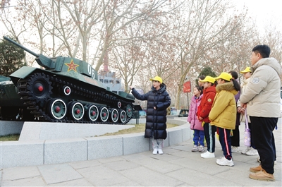 他们不仅是红色故事的聆听者,更成为历史的主动讲述者。“董来扶爷爷驾驶的‘功臣号’坦克向金汤桥奋勇前进,有力支援了东西对进的解放军在金汤桥胜利会师……”在平津馆胜利广场陈列的“功臣号”坦克前,天津市红桥学校学生高誉轩身姿挺拔、眼神明亮,将坦克与战斗英雄的故事娓娓道来。