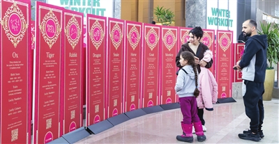 在加拿大安大略省米西索加一处购物中心,人们观看有关中国十二生肖的介绍。 新华社发
