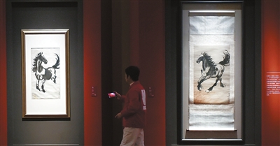 嘉宾在中国美术馆参观展出的徐悲鸿作品《奔马》。