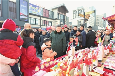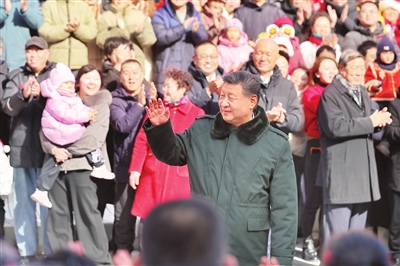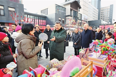 图①10日上午,习近平在东城区隆福寺街区考察时,向全国各族人民和香港同胞、澳门同胞、台湾同胞、海外侨胞致以美好的新春祝福。
