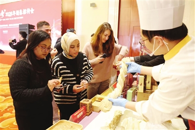 活动现场,天津市人民对外友好协会理事单位和市民间组织国际交流促进会会员单位带来舞蹈、太极、汉服秀等优秀文化节目。舞台一侧还设置了十八街麻花、老津卫茉莉花茶、老美华鞋服、达仁堂药饮、曾氏盘扣等优秀项目展示。中外嘉宾在浓郁的年味中感受中华优秀传统文化魅力,体悟天津开放包容的城市温度。