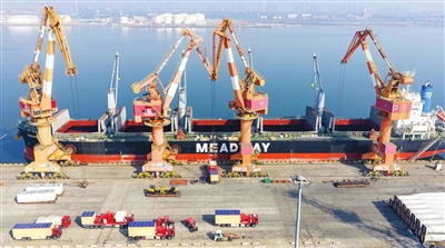 佳柔油田新区块开发首批核心装备装船。 照片由天津海关提供