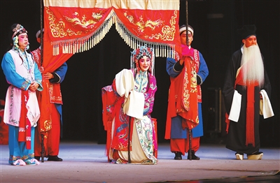 《锁麟囊》剧中演员优美的唱腔及精彩的表演获得现场观众喝彩。 记者 姚文生 摄