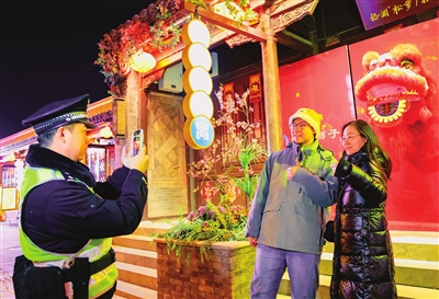 公安西青分局民警在杨柳青古镇景区坚守岗位,服务游客。 记者 潘立峰 摄