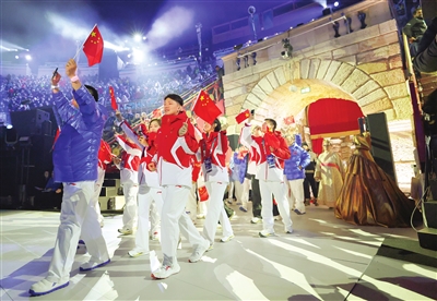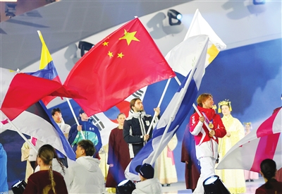 2月22日,中国体育代表团旗手苏翊鸣在闭幕式上入场。