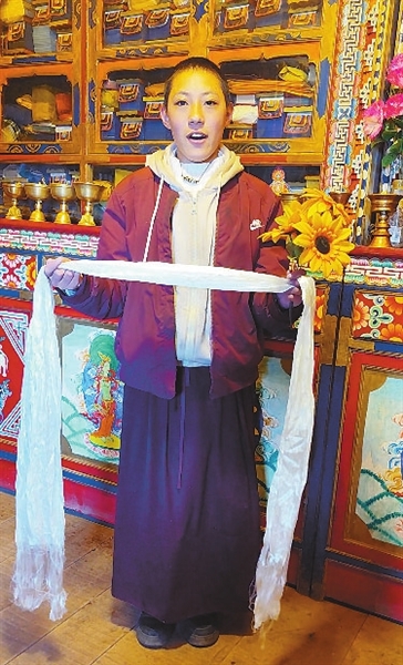 她向悉心治疗照顾过她的天津医护人员献上洁白的哈达,腰背挺得笔直,笑着露出牙齿。