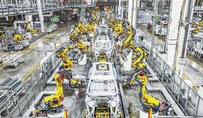 在位于重庆市两江新区的赛力斯汽车超级工厂拍摄的自动化生产作业现场。