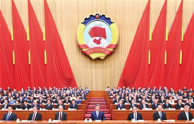 三月的北京,春启华章。人民大会堂大礼堂灯光璀璨,气氛隆重热烈。中国人民政治协商会议会徽悬挂在主席台正中,十面鲜艳的红旗分列两侧。