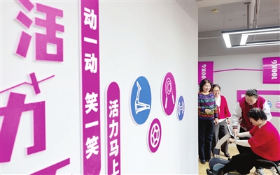 老人在颂禹里社区老年日间照料服务中心内活动。