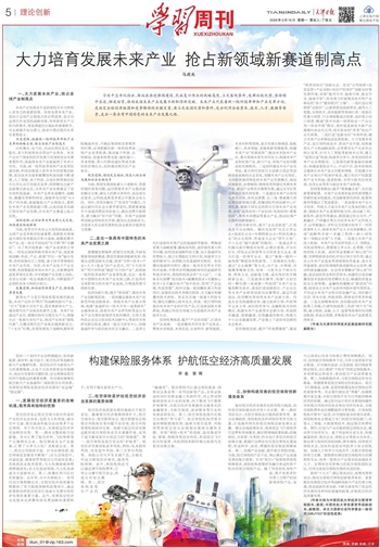 党的二十届四中全会明确提出,加快新能源、新材料、航空航天、低空经济等战略性新兴产业集群发展。低空经济作为新质生产力的重要载体,正处于从技术探索迈向规模化、商业化发展的关键阶段,安全保障是低空经济行稳致远的重要支撑。我市拥有雄厚的航空航天产业基础和广阔的低空应用场景,发展低空保险是低空经济发展的“安全阀”“稳定器”。