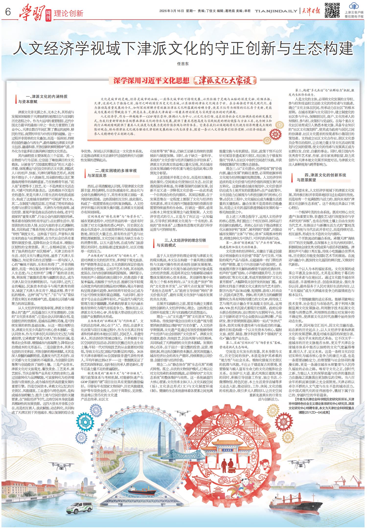 人文经济学视域下津派文化的守正创新与生态构建