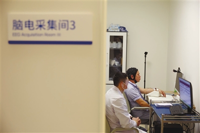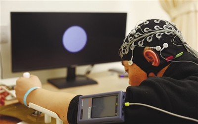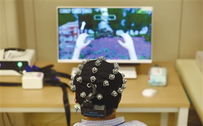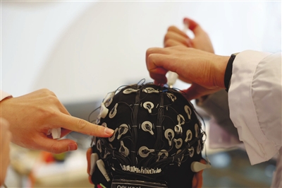 训练前,技术人员需逐一调试脑电采集帽的电极,以保证信号采集质量。