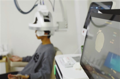 天津市安定医院神经调控诊疗中心里,患者正在进行经颅磁刺激治疗。