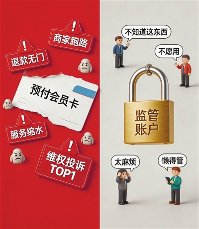 为破解这一难题,各部门纷纷推出预付资金监管账户制度,试图为消费者的“钱袋子”加一把锁。然而“理想很丰满,现实很骨感”:监管账户推出多年,却陷入消费者不知其存在、商家不愿主动推介、设立者埋怨增加工作负担、监管者粗心导致监管不力的尴尬境地。一把好锁,却鲜有人用,最终沦为摆设。