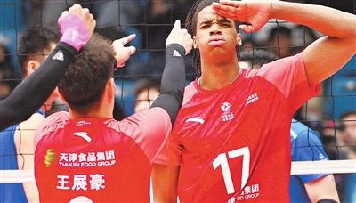 第3局,天津男排在2:7落后的情况下,用袁党毅换下了薛智鸿加强进攻,逐渐将比分迫近。两队又一次战至21平后,上海男排把握住了关键分,以25:22取胜。第4局,天津男排找回了状态,积极的拦防给对手制造了不小的压力,比分来到20平。关键时刻,天津男排依靠薛智鸿和亚历杭德罗的扣球得分,以25:23取胜,将局分再度扳平。决胜局中,天津男排在以8:7领先交换场地后突然发威,连续进攻得手,一举拉开分差,最终以15:9取胜,拿下了这场艰苦的比赛。