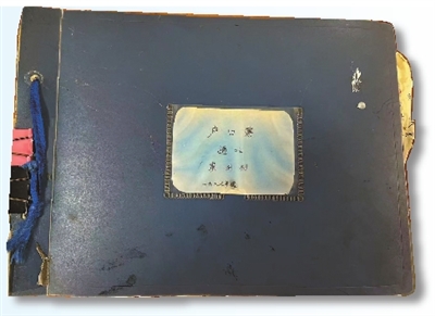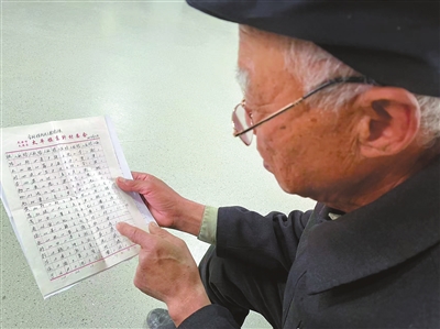 组图为退休会计郝玉江给记者展示村民户口簿和全村姓氏、人数统计表。