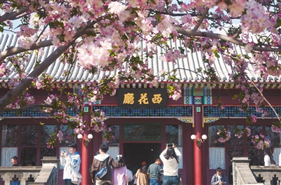 周恩来邓颖超纪念馆西花厅的海棠花盛开,各地观众纷纷前来赏花忆伟人。