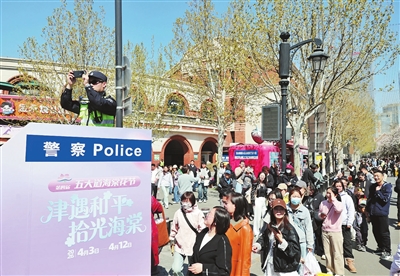 大理道的花影里,刘海鹏弯下腰,赵瑞驿举起手机,他们一次又一次按下快门。取景框里,是游客的笑脸;取景框外,是一座城市的温度。正如一位游客所说:“警察都成一景了”——这大概是这个春天,天津海棠花节最动人的风景之一。