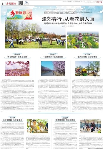 清明前后,天津的田野间悄悄换上了“新衣”——桃花扑簌簌涨满山峦,绿意从林间漫到水畔。这个春天,人们的踏青之旅不再满足于“看花”,到大棚摘一把春鲜,来一场惬意的郊外露营,逛一次“土味”十足的乡野市集……不知不觉中,一趟春游变得体验感满满。田园里“长”出新玩法,乡土里“酿”出慢生活,在这幅动静交织的春景图里,天津的农文旅不再是简单的“景点+农家饭”,而是成了城乡“对话”里的诗意和远方——