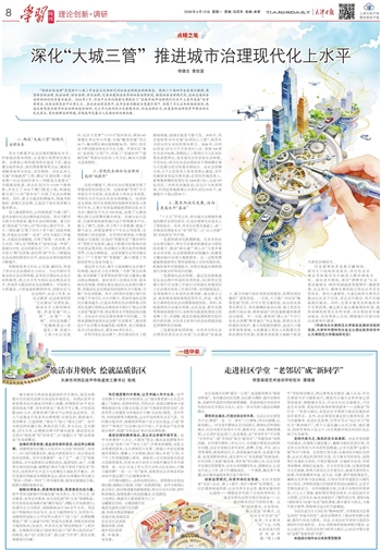 “创新社会治理”是党的十八届三中全会立足新时代对社会治理提出的新要求。党的二十届四中全会再次强调,要坚持系统治理、依法治理、综合治理、源头治理,完善共建共治共享的社会治理制度,推进社会治理现代化,这标志着社会治理的知识体系基本成型。2024年2月,习近平总书记视察天津提出了“在提升城市治理现代化水平上善作善成”的重要要求,社会治理是其中应有之义。在社会治理实践中,我市在技术赋能与党建引领下,实现了多元主体的高效协同,既通过数智技术提升社会治理效能和韧性,又以多元协同的方式凝聚共识,形成治理合力,在复杂的治理场景中精准回应民生需求,有效破解治理难题,实现城市发展与人民福祉的同频共振。