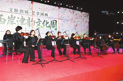 演出曲目中西交融,既有维瓦尔第、莫扎特等作曲家的古典名作,也有《鸿雁》《南泥湾》等民族经典。细腻婉转的弦乐演绎,既尽显巾帼柔美与坚韧力量,也为“西岸津韵文化周”增添了一抹亮色。