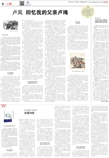 卢岚慢慢成了那个最像父亲的人。不仅眉眼轮廓像,坦荡热忱的性子也像。退休后,她全身心投入整理父亲手稿的工作中,一页页泛黄的稿纸,一行行工整的字迹,让她一点点读懂了那个既熟悉又陌生的父亲。在整理父亲诗词的过程中,她也提笔写起了文章。作品陆续在报刊发表,有人称她“天大才女”,她总是笑着摆手:“我跟父亲没法比。开始写作,只是想离他近一点。”