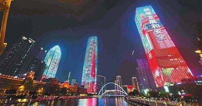 昨晚,“全民国家安全教育日”主题灯光秀在海河两岸呈现。