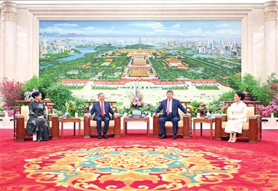 4月15日下午,中共中央总书记、国家主席习近平和夫人彭丽媛在北京人民大会堂同来华进行国事访问的越共中央总书记、国家主席苏林和夫人吴芳璃亲切话别。 新华社记者 李响 摄