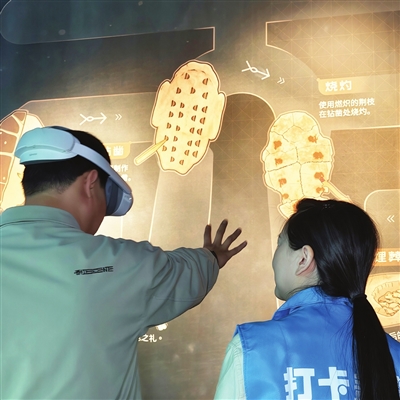 用“混合现实”还原甲骨制作全流程,借“人工智能”与甲骨文趣味互动,展览融入的许多前沿技术让观众耳目一新。“这不是‘炫技’,而是通过技术表达内容,让观众在轻松愉悦的环境中参与、分享,推动甲骨文从专业研究领域走向‘可参与、可共创、可打卡’的潮流文化,唤起大家对传统文化的热爱。”策展人刘恋说。