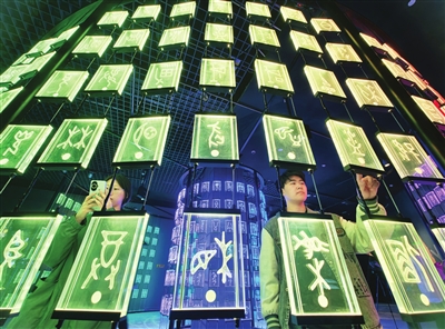 本报讯(记者 刘莉莉 摄影 曹彤)昨日,“契刻流光”——甲骨文沉浸式互动体验数字大展在天津博物馆开展,让距今3000余年的古老甲骨文“很好玩”。