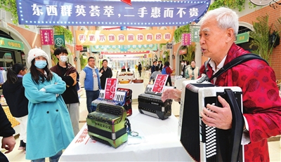 河东区“二次方城市”园区举办“时光记忆·二手市集”第四季时光音乐会主题活动,为二手乐器提供交易交换场所。 记者 周伟 摄