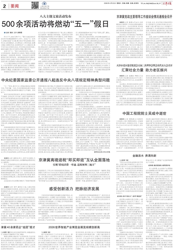 昨日下午,2026天津市“五一”假日文旅活动发布会在南开区鲁能城购物中心举行。活动以“五一狂欢日,津城任逍遥”为主题,整合推出“桥见浪漫游、景区欢乐游、演艺潮流游、文化博览游、乡野休闲游、新潮主题游、购物狂欢游、品质尊享游”八大主题活动,集中发布500余项特色活动,并同步推出机场好体验、地铁有温暖、景区有专线等8项暖心服务举措。