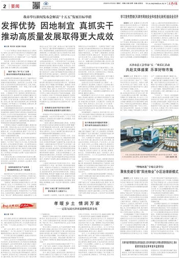 三是着力构筑高水平改革开放主平台。向综合改革要动力,形成一批引领性、带动性强的制度成果。向服务业开放要活力,因地制宜在数字产业、航运服务、金融开放等领域对接规则、拓展场景,推动服务贸易、数字贸易等特色发展。向航运枢纽要增量,聚焦港产城融合发展,做强天津港硬核资源,打造京津冀最便捷出海口、联通欧亚大陆大通道。向平台功能提升要质效,深化五大开发区法定机构改革,持续推动政策赋能、放权赋能、要素赋能、场景赋能,在新一轮改革中跑得更快、支撑质效更有力。