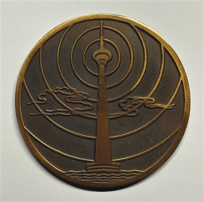 自20世纪中叶开始,随着信息技术的迅猛发展,广播电视在社会生活中发挥的作用越来越大,广播电视塔作为信号传输的承载体在世界各国不断涌现。其前身是装有信号传输装置的电线杆,一般设立在地形开阔的高地上,属于纯功能性构筑物。最早出现的真正意义上的广播电视塔,当数20世纪50年代建成的德国斯图加特电视塔。它的建筑蓝本源于混凝土烟囱结构,在包含钢架天线塔的应有功能的基础上,增添了观光游览和餐饮娱乐等额外功能。于收藏市场可以见到的广播电视塔纪念章,如国外的日本东京广播电视塔,国内的陕西广播电视塔、湖北广播电视塔、江苏南京广播电视塔、上海东方明珠广播电视塔、黑龙江广播电视塔、辽宁广播电视塔等发行的纪念章看,皆能体现广播电视塔的这种基本功能和经营模式。