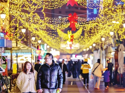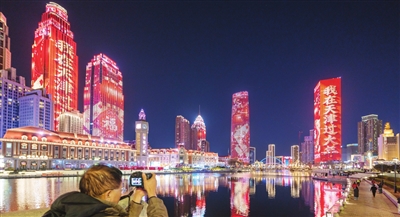 我市节日夜景灯光全面点亮,迎接马年新春到来。图为河北区意风区灯光璀璨。